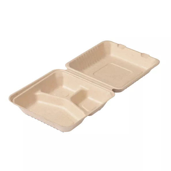 Sie wünschen sich eine gute Balance zwischen Nachhaltigkeit und Präsentation? Dann brauchen Sie die Zuckerrohr-Menübehälter von Biodore! Die Behälter eignen sich perfekt zum Servieren von warmen und kalten Speisen. Durch die verschiedenen Fächer können Sie das Geschirr getrennt präsentieren. Die Behälter werden aus dem Fruchtfleisch hergestellt, das bei der Zuckerrohrverarbeitung übrig bleibt. Dadurch sind sie vollständig zusammensetzbar. Da die Behälter robust, fett- und feuchtigkeitsbeständig sind und sowohl im Gefrierschrank als auch in der Mikrowelle verwendet werden können, sind sie eine nachhaltige Alternative zu Kunststoff. Die beige Farbe sorgt für einen natürlichen Look, der den Wünschen moderner Verbraucher entspricht. Mit den Zuckerrohrbehältern von Biodore zeigen Sie, dass Sie sich für Nachhaltigkeit entscheiden und verleihen Ihren Produkten zusätzlichen Charakter!