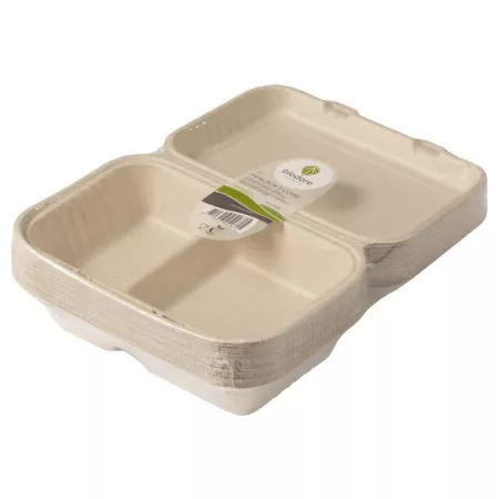 Sie wünschen sich eine gute Balance zwischen Nachhaltigkeit und Präsentation? Dann brauchen Sie die Zuckerrohr-Menübehälter von Biodore! Die Behälter eignen sich perfekt zum Servieren von warmen und kalten Speisen. Durch die verschiedenen Fächer können Sie das Geschirr getrennt präsentieren. Die Behälter werden aus dem Fruchtfleisch hergestellt, das bei der Zuckerrohrverarbeitung übrig bleibt. Dadurch sind sie vollständig zusammensetzbar. Da die Behälter robust, fett- und feuchtigkeitsbeständig sind und sowohl im Gefrierschrank als auch in der Mikrowelle verwendet werden können, sind sie eine nachhaltige Alternative zu Kunststoff. Die beige Farbe sorgt für einen natürlichen Look, der den Wünschen moderner Verbraucher entspricht. Mit den Zuckerrohrbehältern von Biodore zeigen Sie, dass Sie sich für Nachhaltigkeit entscheiden und verleihen Ihren Produkten zusätzlichen Charakter!