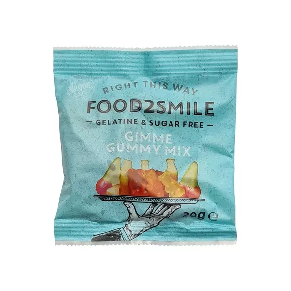 Den Food2smile Gummibärchen Mix (24x 20gr) verkaufen wir im 24er-Pack.