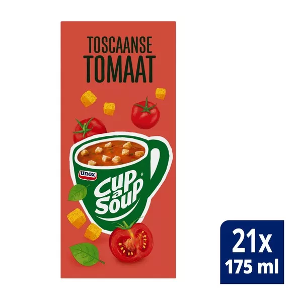 Cup-a-Soup toskanische Tomate, mit nachhaltig angebauten Tomaten. Diese Cup-a-Soup-Variante enthält keine Geschmacksverstärker, künstlichen Farb- und Konservierungsstoffe.